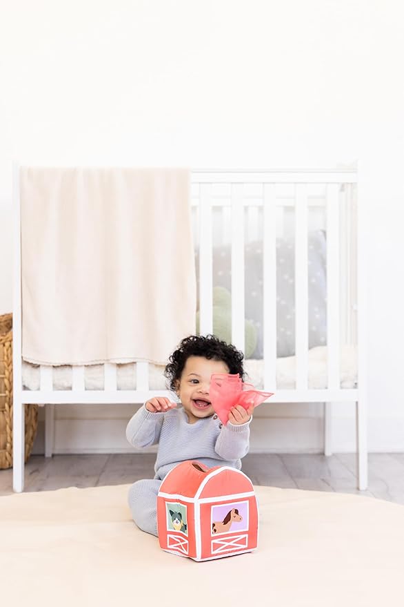 - Explore Sensory Play: Delight your baby with a plush barnyard baby tissue box toy filled with 7 vibrant scarves, encouraging sensory exploration through tactile play. Soothe teething discomfort with a yellow sun baby teething toy; made with FSC certified wood and food grade silicone