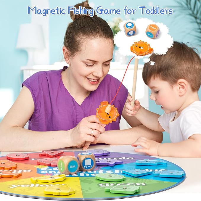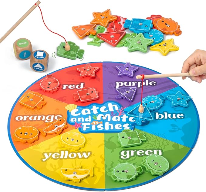 - 【Learn from Play】 This color and shape sorting and matching fishing toy helps toddlers 1-3 years old to learn shapes, colors, geometric patterns, and improve kids aging 2-4 logical thinking, fine motor skills and problem solving ability.It is suitable for children 12+ months.