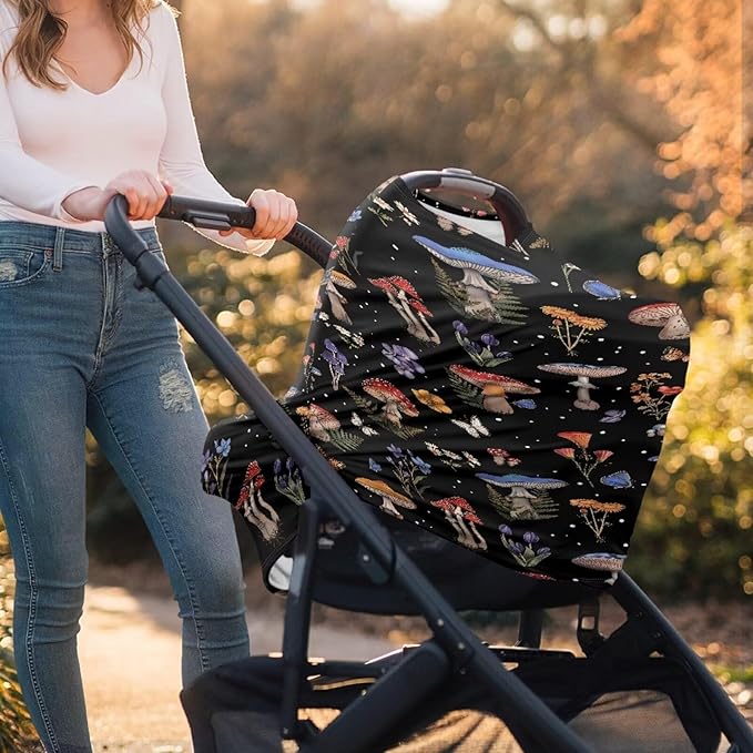Binienty Mushrooms Car Seat Cover Canopies,Cottagecore Mushroom Nursing Cover for Mom Stretchy Infants Stroller Cover/High Chair/Breastfeeding Cover