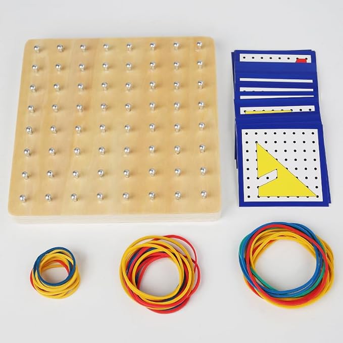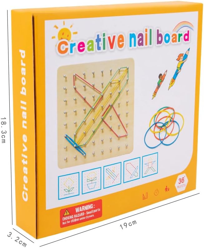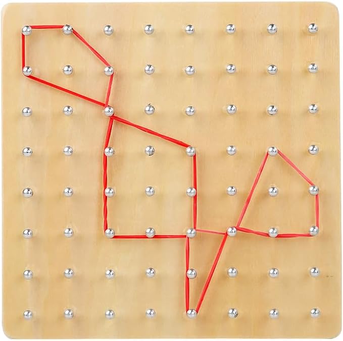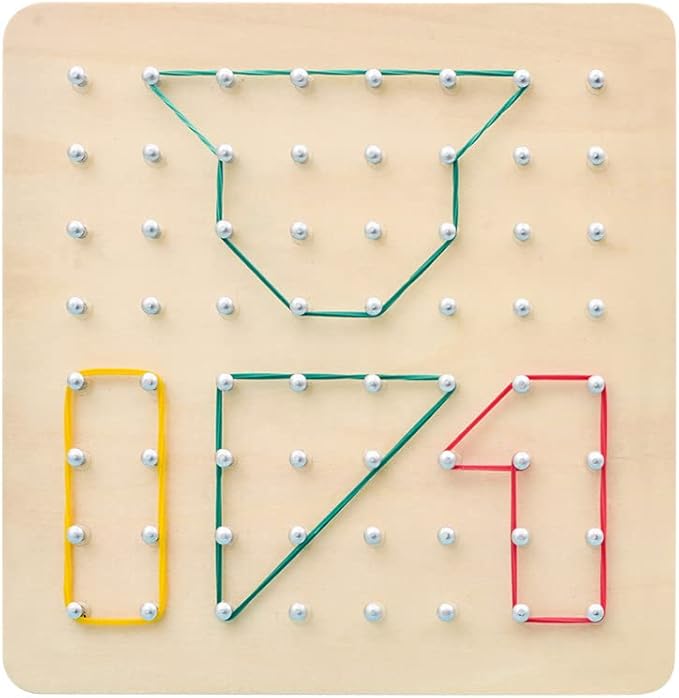 - 📚 𝗘𝗻𝗰𝗼𝘂𝗿𝗮𝗴𝗲 𝗟𝗲𝗮𝗿𝗻𝗶𝗻𝗴 𝗧𝗵𝗿𝗼𝘂𝗴𝗵 𝗣𝗹𝗮𝘆 – This geoboard is a perfect educational toy, helping kids learn a variety of 2D shapes while enhancing their creativity, attention, and perseverance. By manipulating rubber bands into different shapes, kids will develop both fine motor skills and cognitive abilities.