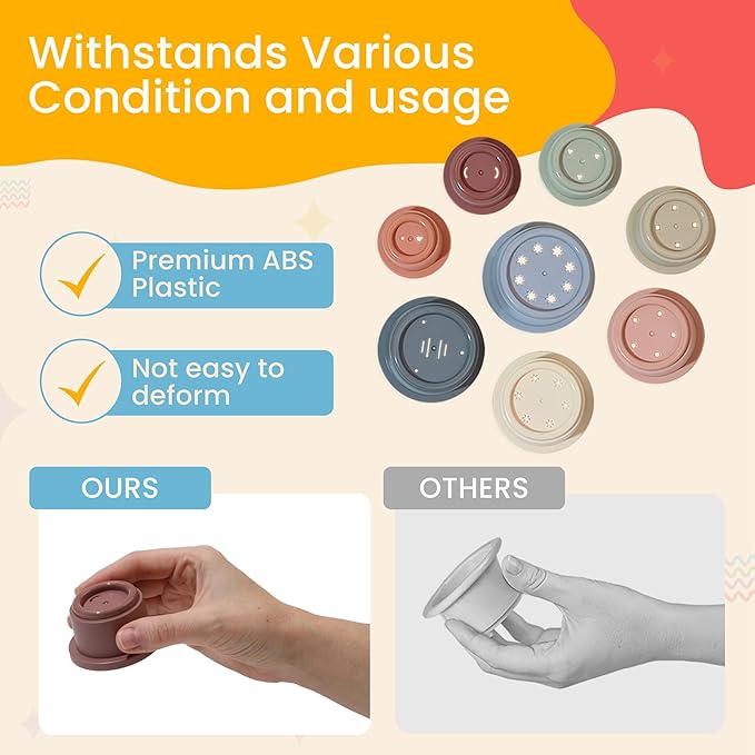 - DURABLE & SAFE - Our toddler stacking cups are manufactured with high-quality, BPA-free, non-toxic materials to ensure your child's safety. These stack cups form an excellent and secure playtime companion being the perfect stackable cups for babies, they are designed with utmost care to be both enjoyable and safe.