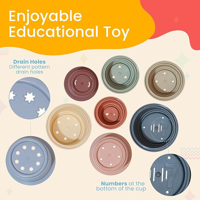 - DEVELOPMENTAL FUN - Introduce your child to the wonder of nesting cups, with our meticulously designed silicone stacking cups toy set. It's not only an exciting toy, but serves as an educational tool to enhance your child's motor skills, color recognition, and hand-eye coordination. Ideal stacking cups for kids looking for a fun and interactive way to learn and play.