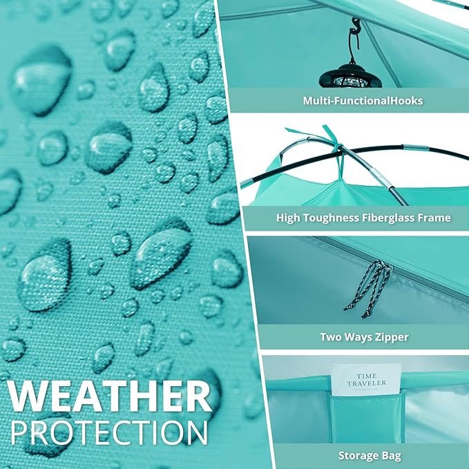 - 🎒【Lightweight and Portable Design】 Weighing only 9 pounds (6-person model), it can be packed into a 47"x8" tote bag - lighter than a beach cooler! The fiberglass poles can be locked in 90 seconds, perfect for car trunks, RV trips or lakeside picnics.