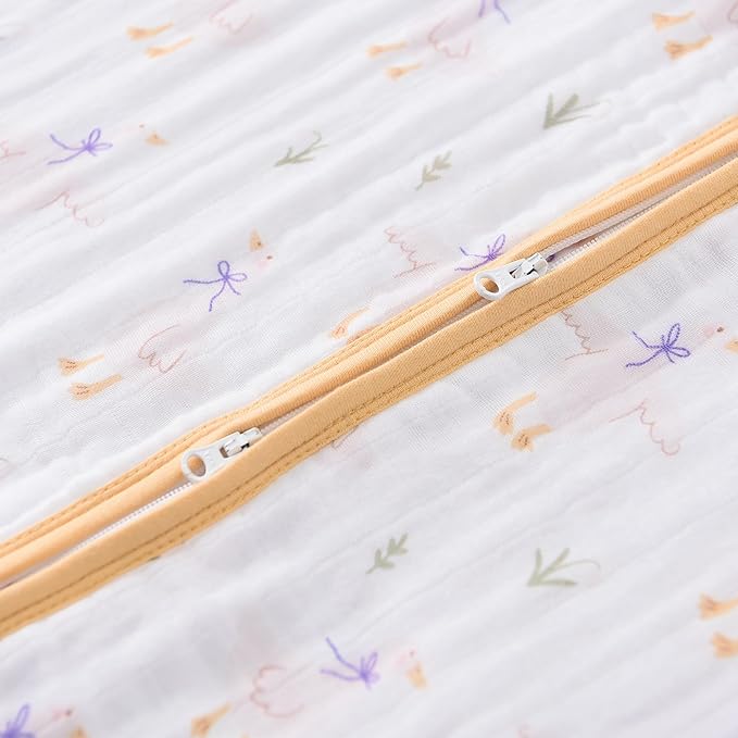 - 100% Organic Cotton: Crafted from 100% organic cotton and featuring four layers of soft cotton muslin, this toddler sleeping sack has a 0.5 TOG rating that delivers warmth while promoting breathability, making it ideal for year-round use. The muslin material is more breathable and softer than knit fabrics, ensuring a peaceful and comfortable night's sleep for your baby