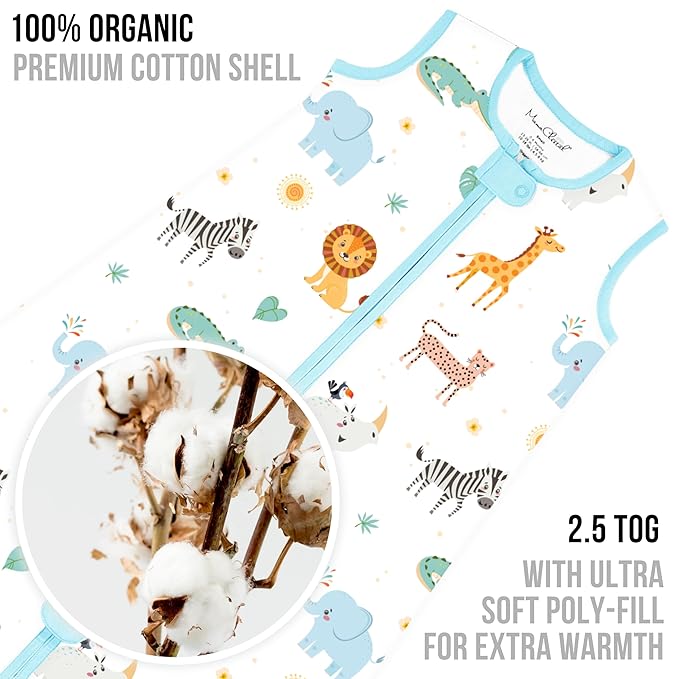 • 【MADE WITH ORGANIC COTTON】— The Mama Cheetah 2.5 TOG Baby Sleeping Bag is made of premium 100% organic cotton shell, with ultra soft polyester fill for extra warmth, which is perfect for cooler months. The organic cotton interlock minimizes the risk of overheating and keeps your baby warm and comfortable. Please be mindful of the TOG rating when ordering the right sleeping bag for your baby.