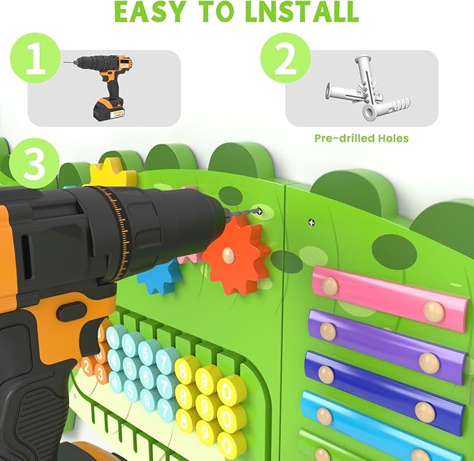 - EASY TO ASSEMBLE AND VERY DURABLE - The panel has fixing holes and connecting screws. This movable wall toy is very easy to install and can be mounted on the wall in 10 minutes. It is made from durable materials that will last for years without damage or fading. A wise investment for any home.