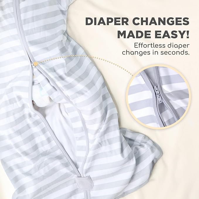 - 【SAFE, SECURE, & BABY-FRIENDLY SLEEP ENVIRONMENT】— Have peace of mind knowing your baby is sleeping soundly without the risks of loose blankets. Our wearable sleep sack provides a snug, secure fit for safe and comfortable rest. A protective tab guards your baby’s neck and chin, preventing irritation, while the bottom zipper cover keeps curious hands from unzipping the blanket. This thoughtful design ensures your little one stays cozy and undisturbed all night long.