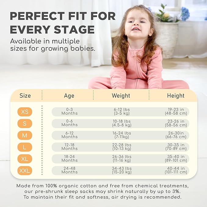 - 【PERFECT FIT FOR YOUR GROWING BABY】— To keep them comfortable & safe as they transition from newborns to curious adventurers, we created 4 different sizes of wearable blankets — Small sleeping sacks for 0-6 months babies, 10-18 lbs, Medium sleeping sacks for 6-12 months babies, 16-24 lbs, Large sleep sacks for 12-18 months babies, 22-28 lbs, & X-Large sleep sacks for 18-24 months babies, 26-36 lbs.