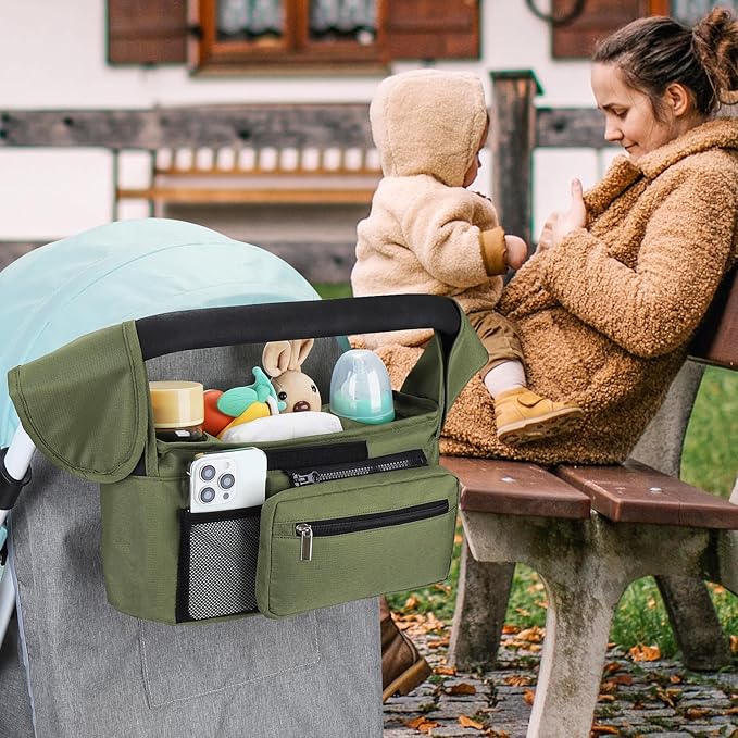 - Multiple Usage Methods : It can be hung as a stroller cup holder organizer on the stroller. When you don't need to use a stroller, you can also install the accompanying strap and carry this organizer bag for easy outing.