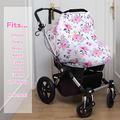 Rquite All-in-1 Car Seat Cover Baby, Carseat Covers for Girl Boy, Stretchy Soft Infant Car Seat Cover, Multi-use Baby Carrier Cover, Car Seat Canopy, Stroller Sun Shade, Nursing Breastfeeding Cover