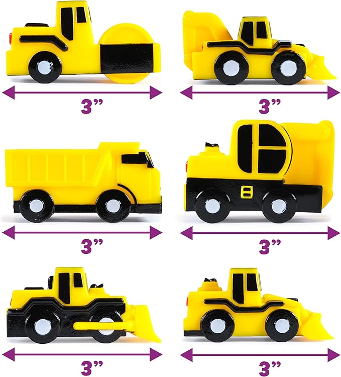- CONSTRUCTION TRUCKS 6 PACK: Includes (6) exclusive Mold Free Bath Toys featuring fun car bath toys - Dump Truck, Bulldozer, Backhoe, Road Roller, Wheel Loader & Excavator - must-have toddler car toys!