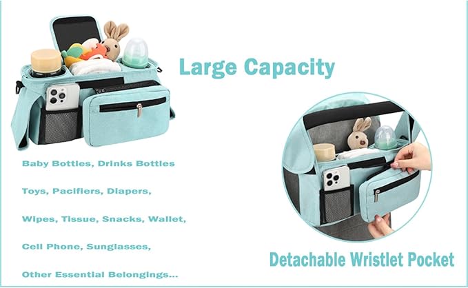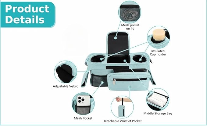 - ✅ BUILT-IN WIPES DISPENSER – Quick front-access wipes slot for messes, spills, or diaper changes. Perfect stroller caddy feature for busy parents.