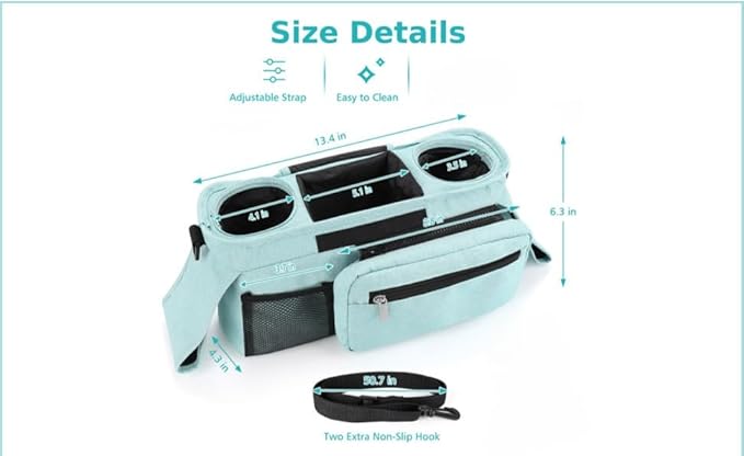 - ✅ DURABLE & WATER-RESISTANT – Made from premium, easy-to-clean fabric that resists spills and daily wear. A stylish stroller organizer designed by parents, for parents..