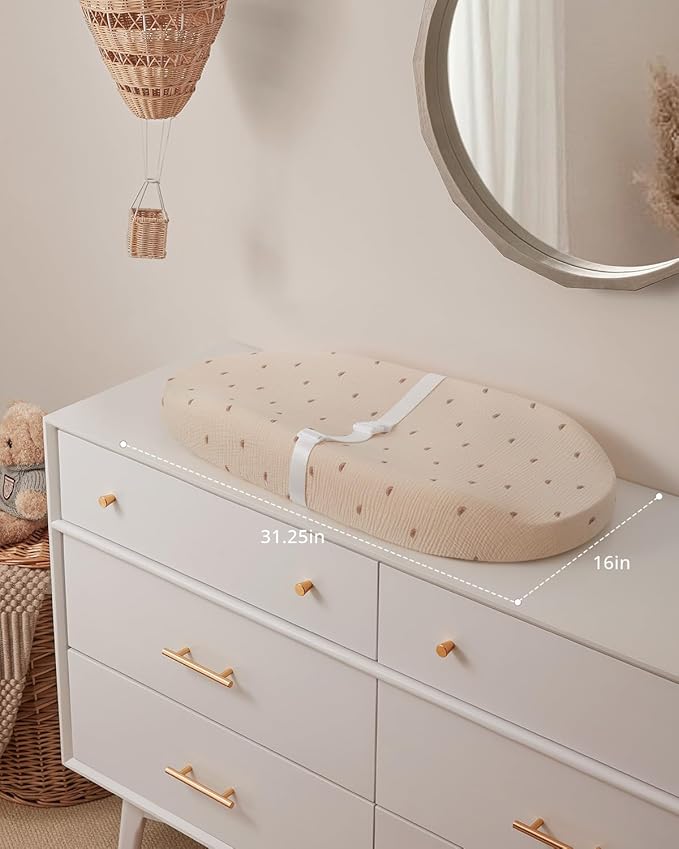 - Premium Muslin & Comfy Design: Made from a soft, breathable muslin cotton cover and a cushioned foam pad, our baby changing pad is gentle on your little one's delicate skin, keeping them warm and cozy during diaper changes in all seasons
