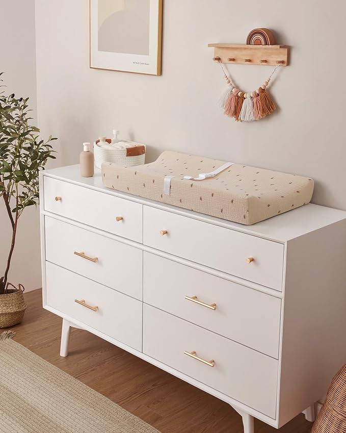 - Premium Muslin & Comfy Design: Made from a soft, breathable muslin cotton cover and a cushioned foam pad, our baby changing pad is gentle on your little one's delicate skin, keeping them warm and cozy during diaper changes in all seasons