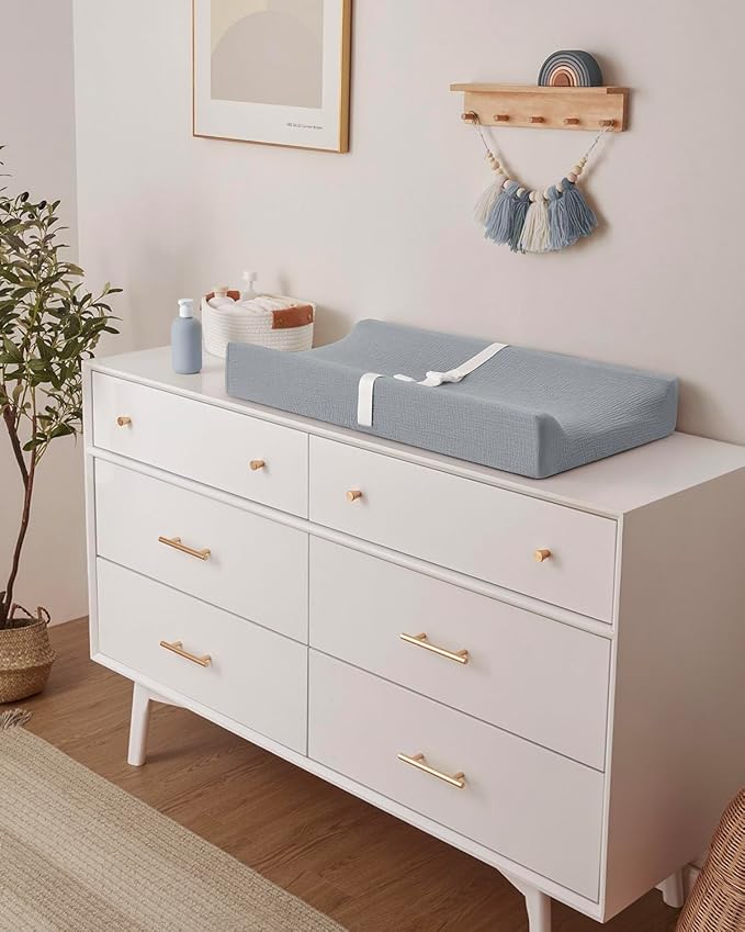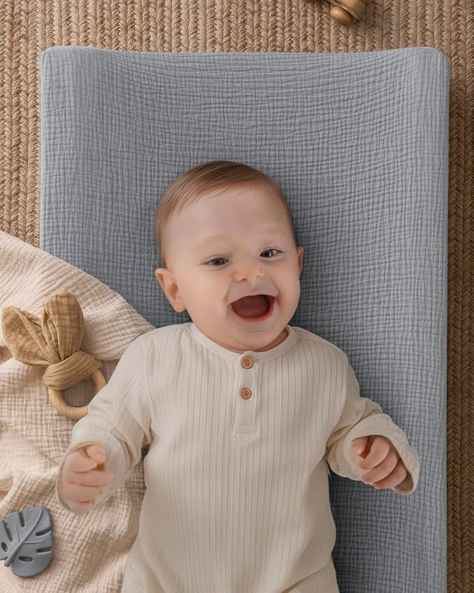 - Design Your Dream Nursery: Our muslin baby changing pad in in neutral Gray brings a soothing, timeless charm to your nursery. It's the first choice for modern parents, an unforgettable unisex baby shower gift that new parents will love