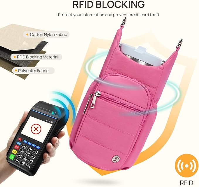 - Telena Water Bottle Bag: Made of high quality down fabric with adjustable vintage shoulder straps makes this water bottle holder classic yet stylish. The soft and waterproof down filled cotton material has better water and shock resistance while maintaining high softness and elasticity. Not only to prevent the water cup bump, but also wear light. Please note that this crossbody bag cannot be washed or machine washed