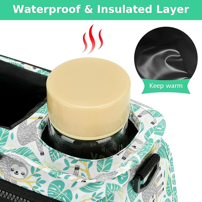 - Multi Structure: This stroller storage organizer equipped with multifunctional structure: Insulated cup holders on both sides to place baby bottles and drink cups; The middle storage compartment can accommodate baby diapers, wipes, pacifiers, teething toys and other accessories; Equipped with a detachable and portable small bag, it is convenient for mothers to store important items such as cell phones, wallet etc.