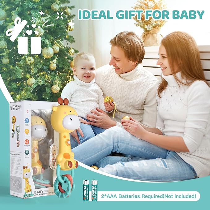 Orzbow Giraffe Teether Toy, Baby Teething Toys & Rattle Ligh-Up, Musical Baby Toy 3-6-12-18 Months, Easy to Grip Sensory Toys for Toddlers Bpa-Free, Boy Gir Birthdays Gift