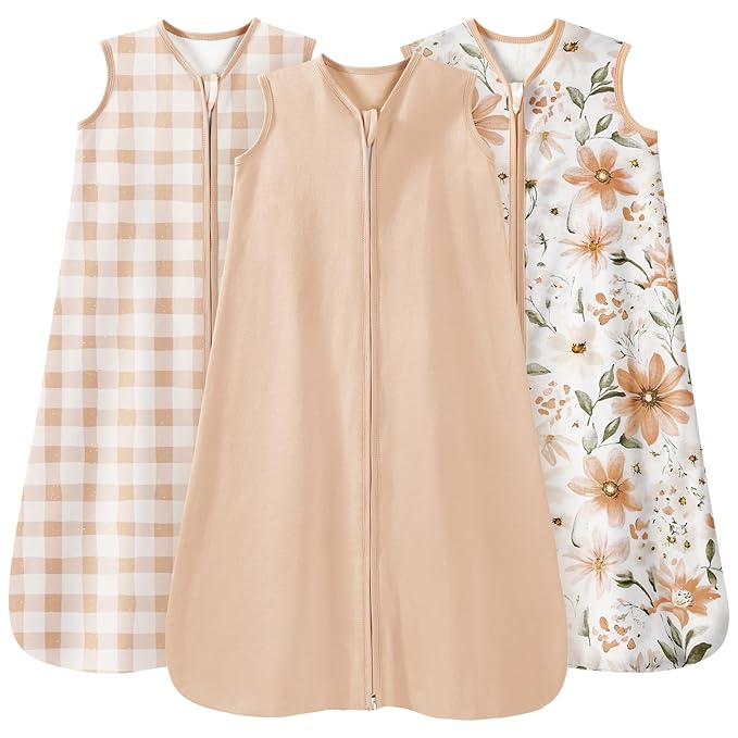 Baby Sleep Sack 6-12 Months 3 Pack 100% Cotton Lightweight 0.5 TOG Wearable Blanket Baby Sleep Bag with 2-Way Zipper for Newborn Infant Orange Flowers & Plaid