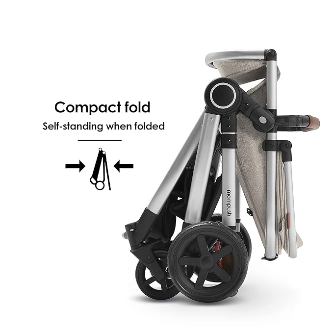 - For On-the-Go Families — The telescoping faux leather stroller handle offers comfortable adjustment for every parent. When it’s time to go home, the pram stroller folds in one step and stands independently, with or without the toddler seat attached. This makes it easy to fit the lightweight metal frame neatly in your vehicle