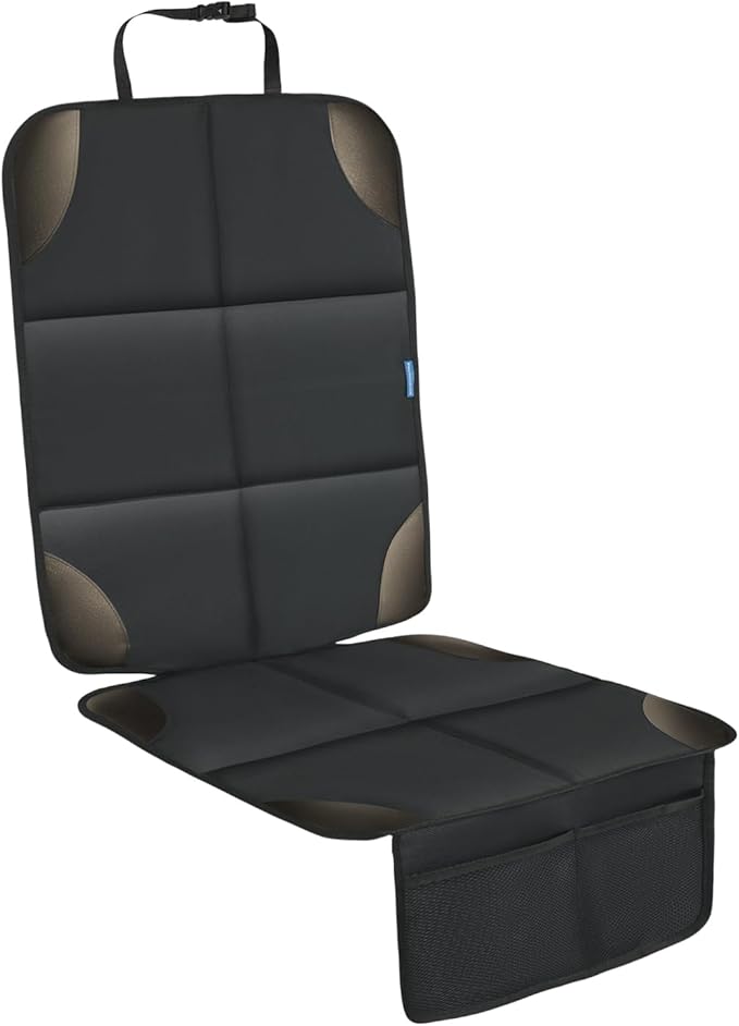 - ADJUSTABLE SAFETY STRAPS: The car seat mat has adjustable safety straps that will tie the cover securely to the headrest. Securely fasten them to achieve a perfect fit. Forget about seat protectors sliding off the seat, slipping under your legs and causing discomfort. This car seat cover has anti slip dots for extra grip. Perfect for those traveling with kids, babies, pets